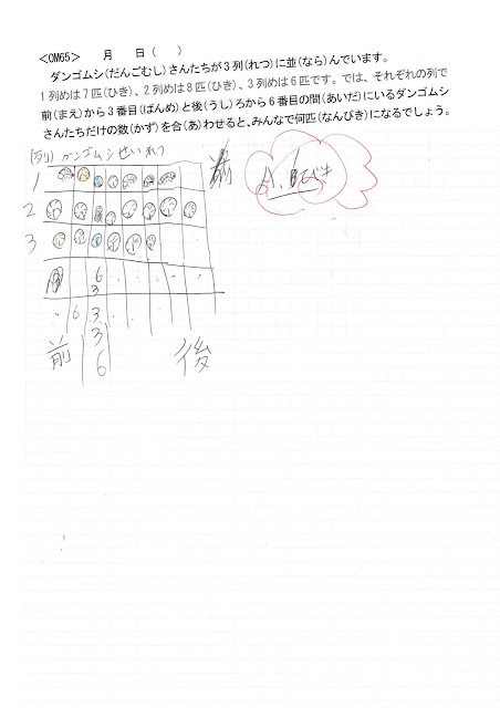 親子で「どんぐり倶楽部」の絵解き文章題をやっていました。
